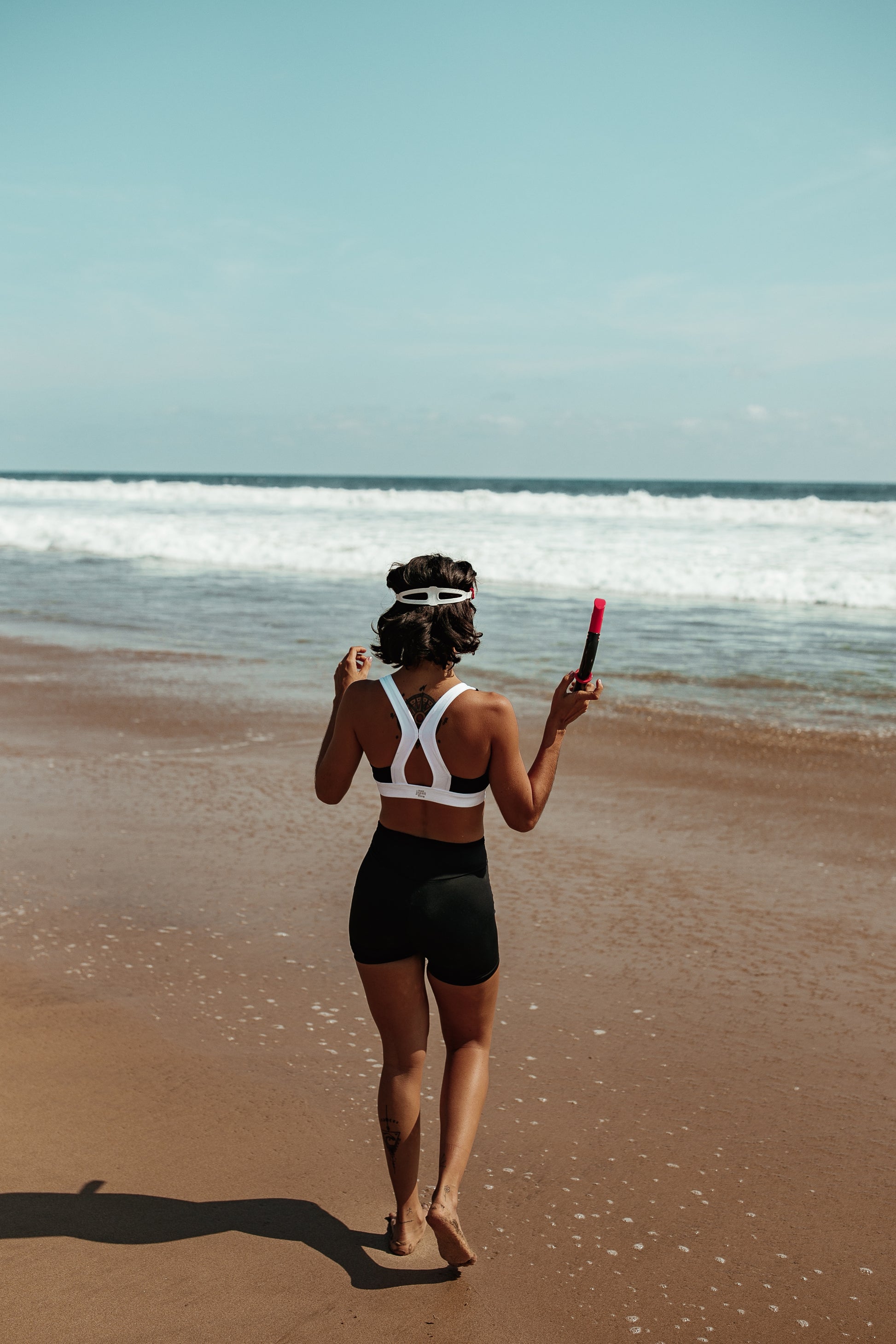 Top triangulo con dije de concha en el centro, apto para colocar copas push up desmontables. Bottom tiro alto en V con amarre a los lados y dijes de conchas en las tiras. Cover back pequeño (hilo).
